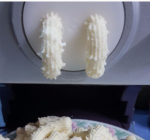 Nhấn nút cho máy trộn và ép (Start the machine to mix and extrude)