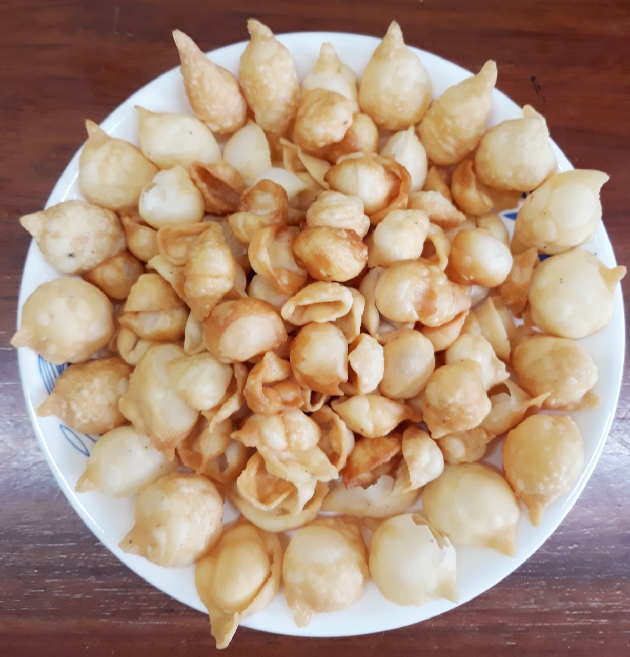 Để bên ngoài 30p cho snack định hình sau đó chiên ngập dầu/deep fry after 30 minutes